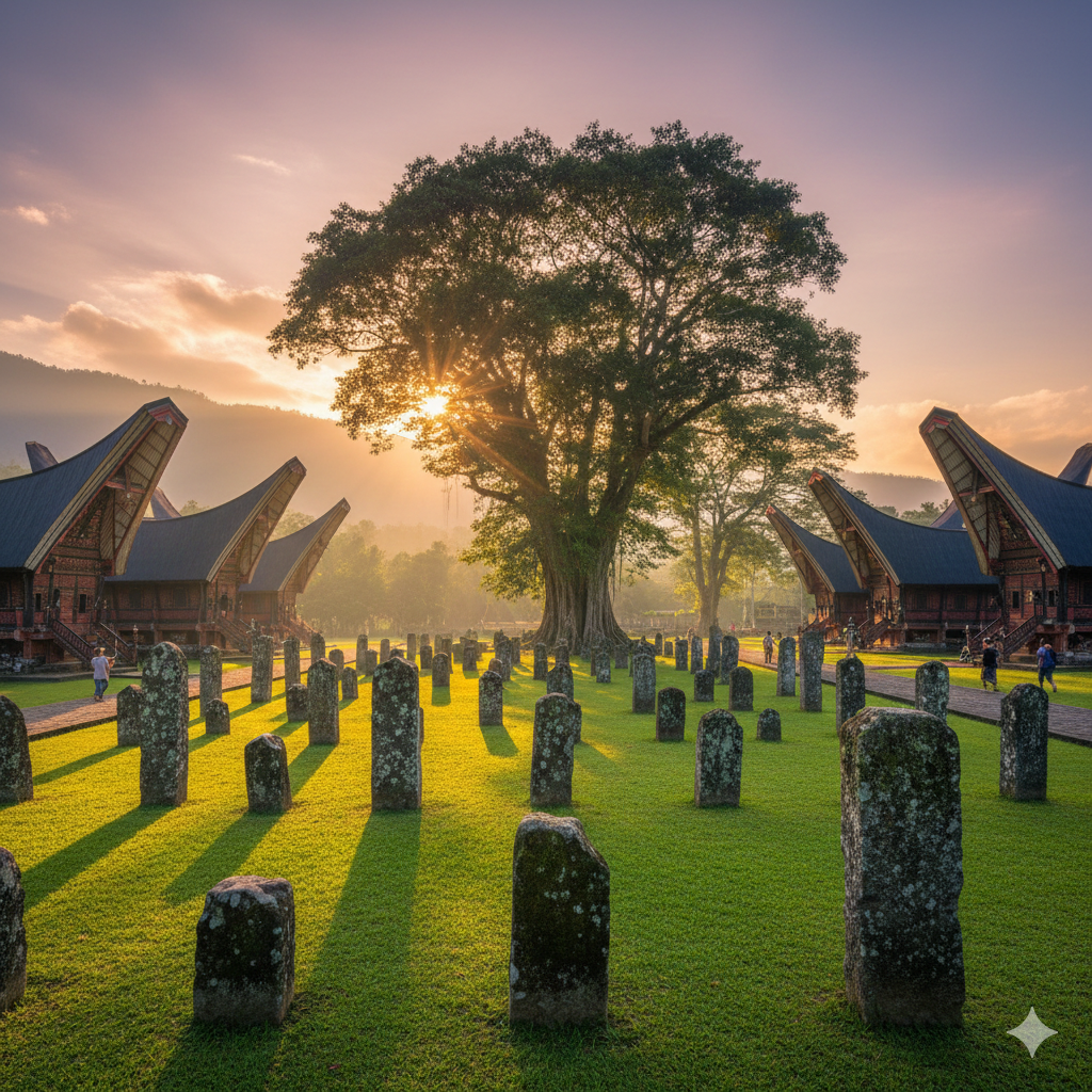 Situs megalitikum yang menampilkan ratusan menhir atau batu berdiri dengan berbagai ukuran sebagai bentuk penghormatan bagi tokoh adat yang telah meninggal.